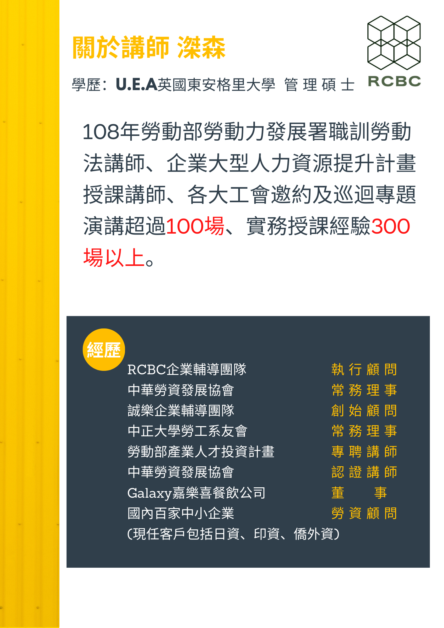 主要教學內容為勞基法令、勞保法規、職災處理解析、